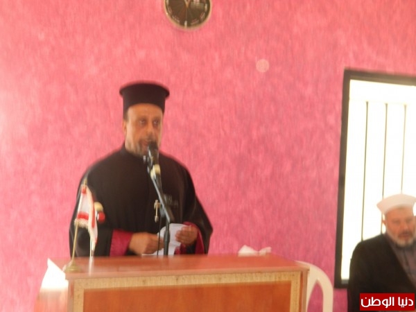 واضاف الجمعة نلتقي للتضامن مع سيادة المطران عطا الله حنا رئيس اساقفة سبسطية للروم الارثوذكس ونؤكد وقوفنا الى جانبه في مواجهة سياسة الاحتلال الذي يتعرض لها صاحب المبادئ والقيم والمواقف الوطنية والقومية الذي يحمل فلسطين والقدس في قلبه ووجدانه ومسيرته ، ونجتمع من أجل التضامن مع أسرى الحرية وننادي بحريتهم وحريتنا ونقول للعالم كل ما نقدمه من هذا اللقاء في خميس الاسرى لايساوي قطرة دم تسال من طفل فلسطيني ، ونقول ان اسرى الحرية يصنعون لنا مجد فلسطين وهنا احيي بكل تقدير الأسرى المضربين عن الطعام من رفاقنا في الجبهة الشعبيه ،هذه الجبهة التي قدمت شهدائها على طريق تحرير الارض والانسان وفي مقدمتهم القائد الوطني والقومي الكبير ابو علي مصطفى ، مما يتطلب من المؤسسات الدولية والحقوقية بالقيام بواجبها في فضح جرائم الاحتلال بحق الاسرى ومنها سياسة الاعتقال الإداري التي تُشكّل انتهاكاً لاتفاقية جنيف الرابعة واللوائح الدولية الخاصة بالتعامل مع الاسرى، وهنا اتوجه بالتحية للقائد احمد سعدات أمين عام الجبهة الشعبية لتحرير فلسطين وللأخ مروان برغوثي عضو اللجنة المركزية لحركة فتح وللمناضلة خالدة الجرار وللمناضل فؤاد الشوبكي وقيادات الحركة الفلسطينية الأسيرة وعموم الأسرى الفلسطينيين وأخواتنا الأسيرات في سجون الاحتلال تحية لهم جميعاً وهم يصنعون ملحمة القيد والحرية، تحية لهم وهم يضحون بأجمل سنين عمرهم من أجل أن ننعم جميعاً في الحرية والاستقلال ، وإذا كنا اليوم نجتمع من أجل التضامن مع أسرى الحرية وننادي بحريتهم وحريتنا نقول للعالم كل ما نقدمه من هذا اللقاء في خميس الاسرى لايساوي قطرة دم تسال من طفل فلسطيني ، مما يستدعي منا العمل على وحدة الصف الفلسطيني وتعزيز الوحدة الوطنية في اطار م.ت.ف الفلسطينية بمشاركة الكل الوطني وتفعيل مؤسساتها على ارضية شراكة وطنية ، مؤكدين على أهمية الضغط الشعبي لانهاء الانقسام الكارثي ولم الشمل الفلسطيني ومواجهة جميع السياسات الخاطئة.
