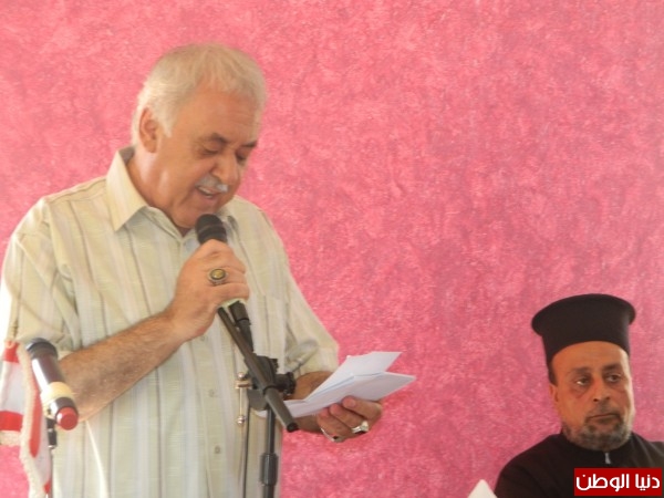 واكد نبيل حلاق باسم الحملة الاهلية لنصرة فلسطين وقضايا الامة اشاد فيها بالشهداء والاسرى ،وقال ان قضية فلسطين ستبقى تحتل المكانة الاولى في حركتنا ونضالنا كما احتلت هذه القضية المكانة لدي الشهيد القائد عماد مغنية ، وحيا وقفة المطران عطاالله حنا وصموده في وجه الاحتلال ودفاعه عن القدس وعروبتها .