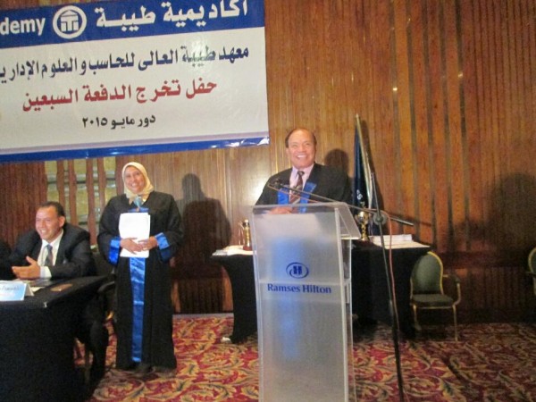 نظمت اكاديمية طيبة المعادى برئاسة الدكتور صديق عفيفى مساء الأثنين حفل تخرج الدفعه السبعين لمعهد طيبة العالى للحاسب و العلوم الاداريه بأحد الفنادق الكبرى بالقاهرة