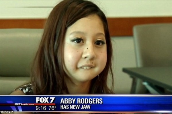 حسب ما نشرته صحيفة "ديلى ميل" البريطانية، ولدت "آبى رودجرز" البالغة من العمر 16 عاما من ولاية تكساس، بحالة وراثية نادرة حيث لا تمتلك أي عظام بفكها، وبعد أن قرر الأطباء زراعة إحدى العظام بفكها لمساعدتها على تناول الطعام والتحدث، وقع الاختيار على عظام الفخذ بدلا من الساق لوضعها للفك، وهو ما يعد الأمر الأول من نوعه.