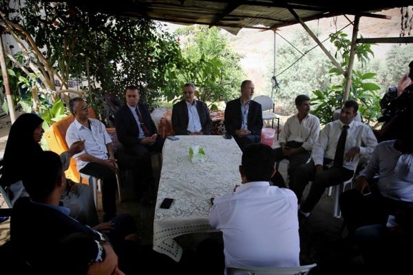 من جانبها رحبت المواطنة حمايدة بالمحافظ أبو بكر والوفد المرافق له من المؤسسة الأمنية مؤكدة قدوم أشخصاص من بوابة الحاجز الملاصقة لمنزلها والذين طلبوا منها بيع المنزل والأرض عارضين مبلغاً مفتوحاً وصل إلى مليون شيكل مقابل إخلاء المنزل وبيعه لهم.
