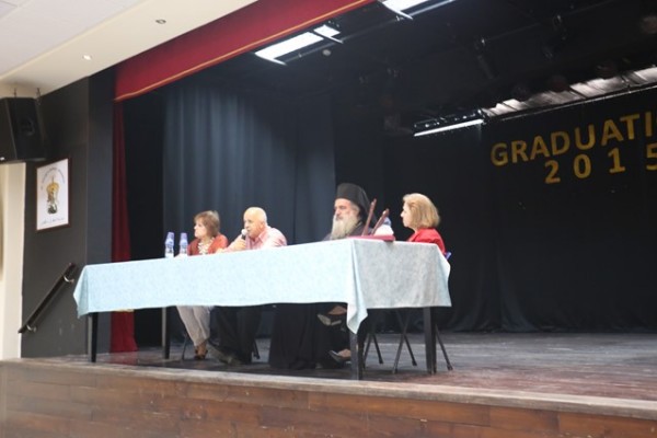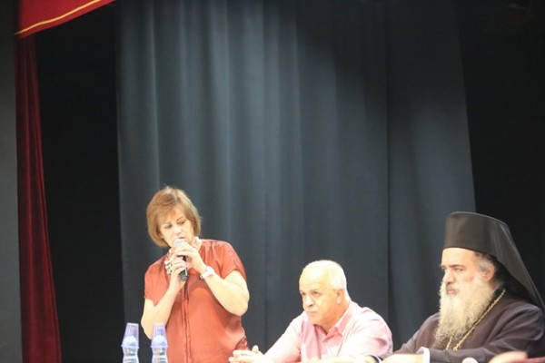 وقد تحدث في هذه الندوة سيادة المطران عطا الله حنا رئيس اساقفة سبسطية للروم الارثوذكس والكاتب المقدسي المعروف راسم عبيدات ، وقد قامت المربية باسمة خوري بالترحيب بالضيوف والسيدة لما سحار امينة سر المكتبة في المدرسة قامت بتقديم الضيوف ، كما قام الاب حسام نعوم بإلقاء كلمة ترحيبية .