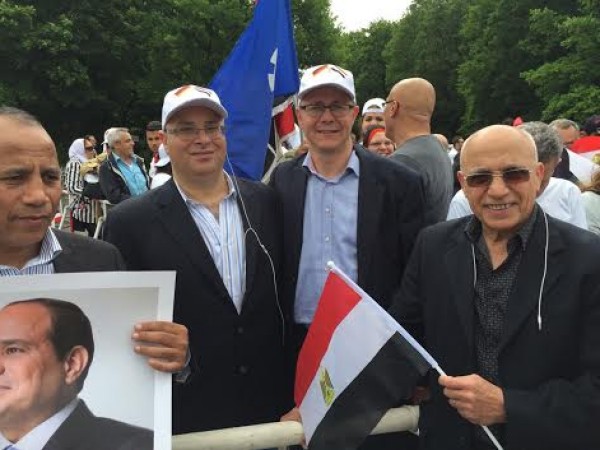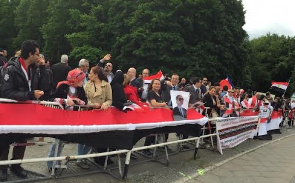 برئاسة امل حسن وسويسرا برئاسة محمود فضل هم اول الحاضرين امام قصر الرئاسة الالمانية فى برلين شاركوا فى الهتاف والترحيب مع الالاف قبل واثناء وبعد وصول الرئيس السيسى للقاء الرئيس الالمانى يوآخم جواج وقد هتف الاف الحاضرين " تحيا مصر تحيا مصر " .