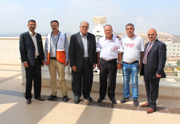 وضم الوفد الزائر، مدير دائرة الإسعاف والطوارئ في جمعية الهلال الأحمر الفلسطيني الدكتور عبد ربه مناصرة، ومدير مركز الإسعاف والطوارئ في جنين السيد محمود السعدي، ونائبه السيد خالد الأحمد، وكان في استقبالهم الى جانب رئيس الجامعة مساعده للشؤون الإدارية والمالية الأستاذ فالح أبو عرة، ومدير دائرة العلاقات العامة الأستاذ فتحي اعمور.