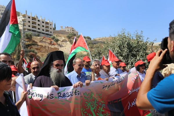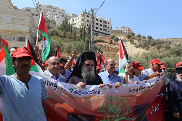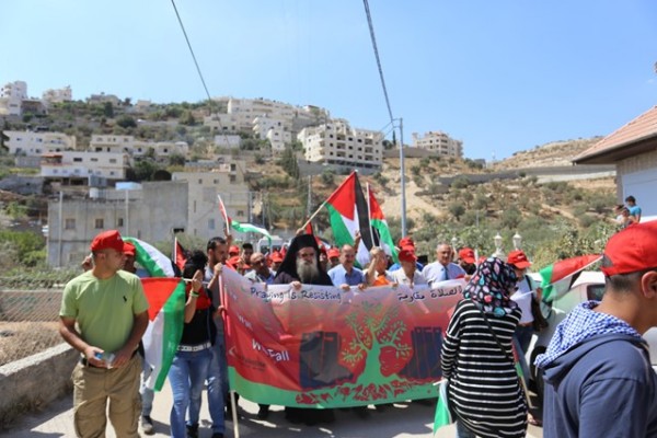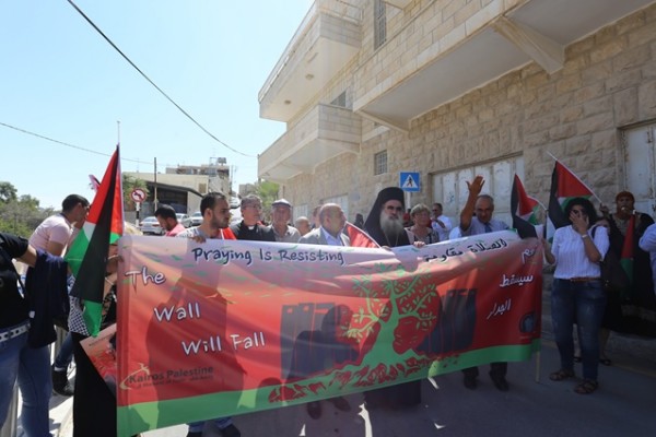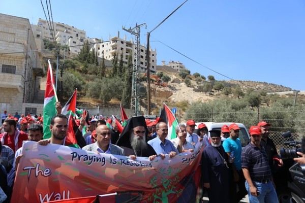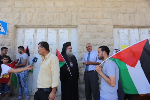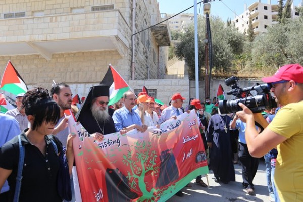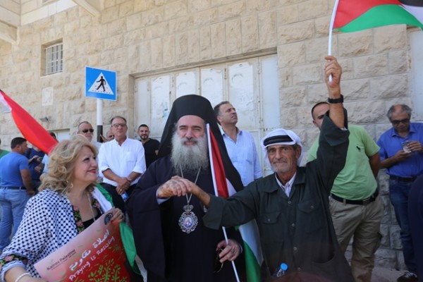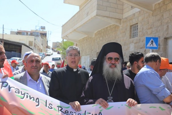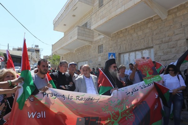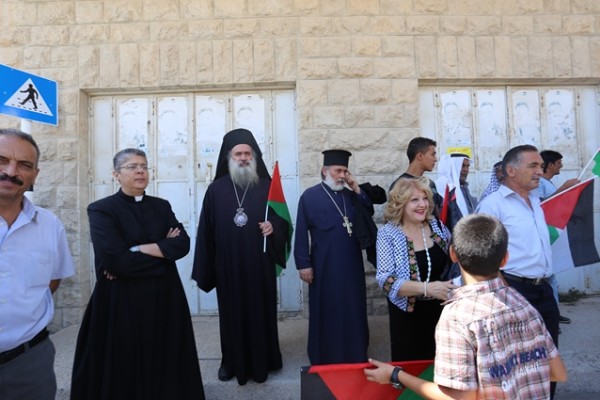 وقد تقدم المسيرة سيادة المطران عطا الله حنا رئيس اساقفة سبسطية للروم الارثوذكس ورئيس بلدية بيت جالا والدكتور مصطفى البرغوثي والاستاذ عبد الرحيم ملوح وغيرهم .