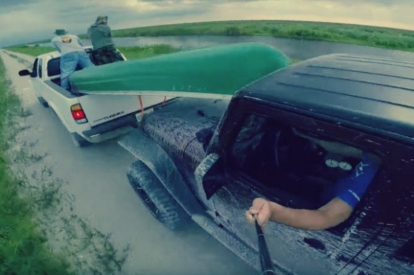 ويظهر أحد الأشخاص في الفيديو يقود سيارته «الجيب»، وأمامه سيارة أخرى ومحمل عليها أشخاص، بينما كان هو ممسكًا بعصا «السيلفي» محاولًا التقاط صورًا لنفسه.