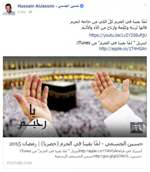 بث الفنان الإماراتي حسين الجسمي فيديو لأغنيته الجديدة “لما بقينا في الحرم”، وذلك بمناسبة وقفة عرفات.