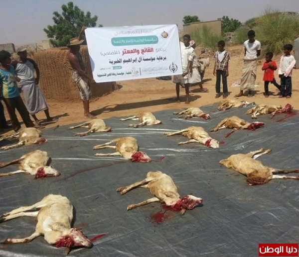 اليمن : تدشين مشروع أضاحي لعدد 1330 أسرة محتاجه في عدة محافظات في أول أيام العيد