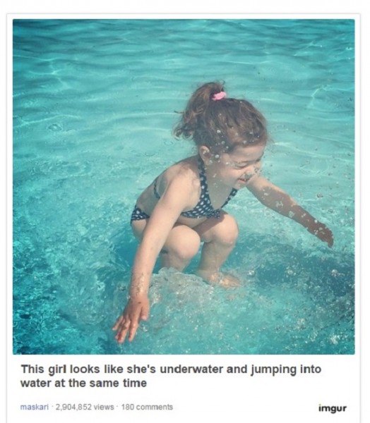 بعد الفستان الشهير الذي اختلف مستخدمو مواقع التواصل الاجتماعي حول لونه الفترة الماضية، ظهرت صورة جديدة شغلت "الإنترنت": هذه الطفلة تقفز في الماء أم أنها تحته؟