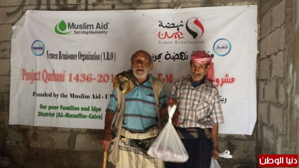 دشنت " منظمة نهضة يمن" مشروع الأضاحي للعام 1436ه / 2015 حيث تم توزيع اللحوم كاضحيات للمحتاجين والنازحين في مديرتي المظفر والقاهرة بمحافظة تعز بتمويل من منظمة العون الإسلامي ــ بريطانيا وأفاد المدير التنفيذي للمنظمة الأستاذ/ ماجد الجوبي بأن المشروع يهدف الى احياء سنة الاضاحي وتجسيد روح التكافل الانساني بين افراد المجتمع، واطعام الفقراء والمساكين والنازحين خلال ايام عيد الاضحى المبارك ، وتخفيف معاناة الناس في ظل الظروف التي تمر بها البلاد وادخل السعادة اليهم حيت تم أعطاء كل أسرة،كمية كافية من اللحوم واستهدف المشروع 500 أسرة / 4152 فرد منهم 1420 أمراة و1307 طفل.