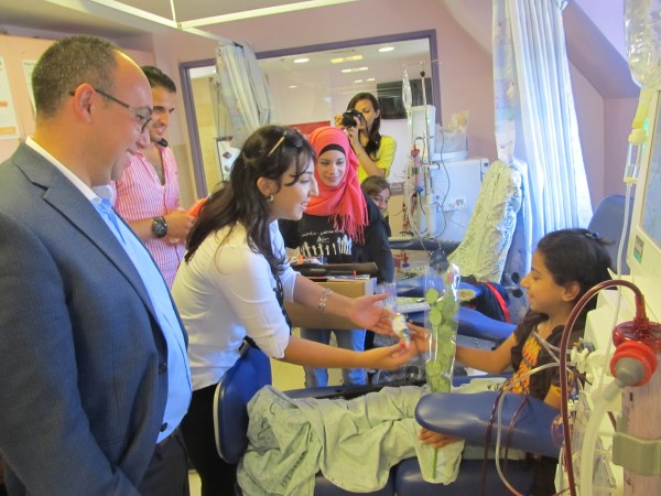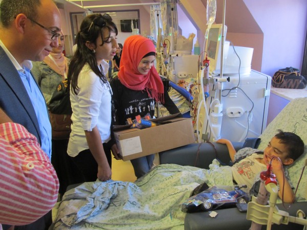 ادخلت زيارة بمناسبة عيد الاضحى المبارك البسمة على وجوه اطفال وحدة غسيل الكلى في مستشفى المطلع بادرت اليها مبادرة ساند الشبابية بالتعاون مع الدار الثقافية ومديرها العام المهندس سامر نسيبة وبحضور رئيس نادي الصحافة المقدسي محمد زحايكة، ثاني ايام العيد المبارك وشملت مستشفيات المطلع والمقاصد والفرنساوي في القدس . وقدم متطوعو ساند من شبان وصبايا يرافقهم المهندس نسيبة الورود والالعاب والحلويات للاطفال وذويهم وسط اجواء من الفرح والحبور الذي تركته هذه اللفتة الانسانية التي جاءت في ظروف مشحونة ومتوترة من جراء ممارسات قوات الاحتلال والمستوطنين لحجب الفرح حتى عن اطفال فلسطين .