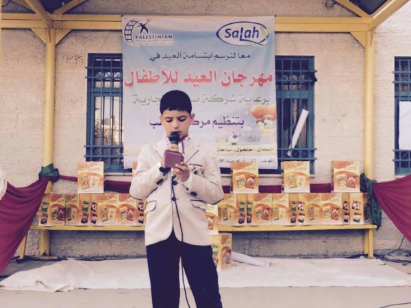 نظم مركز مواهب الشباب الفلسطيني مهرجان العيد للأطفال برعاية شركة صلاح التجارية ،وذلك بمناسبة عيد الاضحى المبارك  في ساحة مدرسة فلسطين-حلحول  بمشاركة أكثر من 1500طفل وذويهم ، بهدف الترفيه عن الأطفال والتعبير عن فرحة العيد وسط أجواء من الفرح والسرور حيث تخلل المهرجان العديد من الفقرات الترفيهية والفنية والألعاب والمسابقات وتقديم الهدايا ،إضافة لتقديم العروض المميزة للأطفال الموهوبين والمبدعين لتشجيعهم على ممارسة هواياتهم ومهاراتهم .