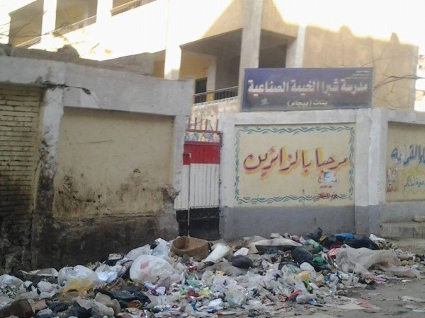 وأوضح عامر "أن هناك لافتة إمام مدرسة شبرا الخيمة ترحب بالزائرين والقمامة تحاصرها