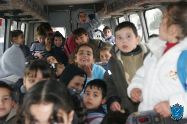 الشرطة تضبط حافلة نقل طلاب بحمولة زائدة بلغت 42 طالب في الخليل