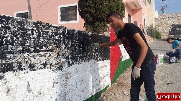 متطوعي مجلس صيدا القروي يرفعون ويرسمون العلم الفلسطيني فوق مباني البلدة وعلى جدرانها