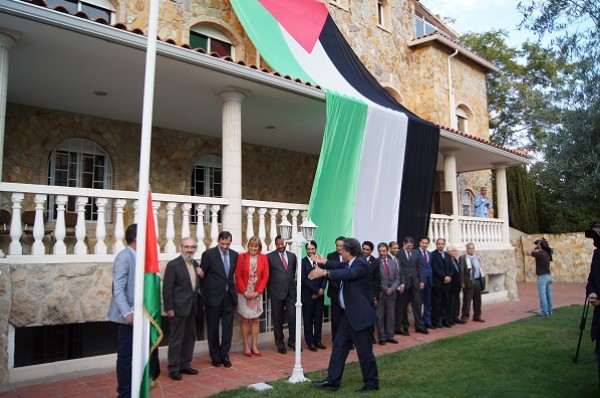 الفلسطينية في مدريد، إحتفالا بمناسبة رفع علم فلسطين في الأمم المتحدة، بحضور أعضاء السلك الدبلوماسي العربي المعتمدين لدى إسبانيا، بالإضافة الى سفيرة مملكه السويد، وممثلين عن وزارة الخارجيه الإسبانية، والبيت العربي ومنظمات حقوق الإنسان والأحزاب الصديقة والمجتمع المدني وعدد كبير من الجالية الفلسطينية والعربية والأصدقاء الإسبان.
