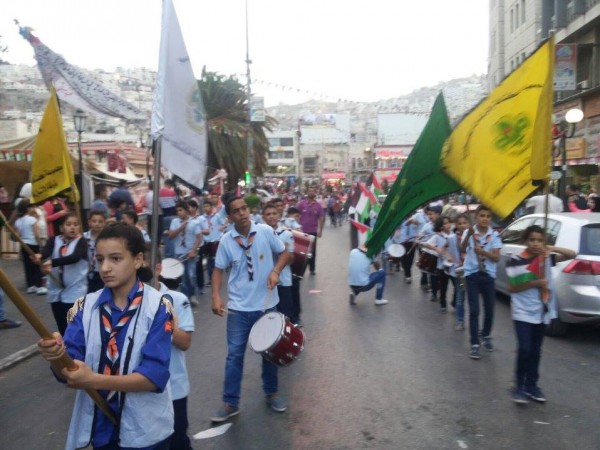 حيث انطلقت المجموعات الكشفية من ساحة دير القديس فيليبوس بعد رفع العلم واداء الوعد الكشفي، باتجاه حارة الغرب و منها الى شارعالفاطمية ثم شارع غرناطة ووصولا إلى دوار الشهداء في نابلس، حيث حمل الكشافة الاعلام الفلسطينية وعزفوا الموسيقى الكشفية بهذه المناسبة .