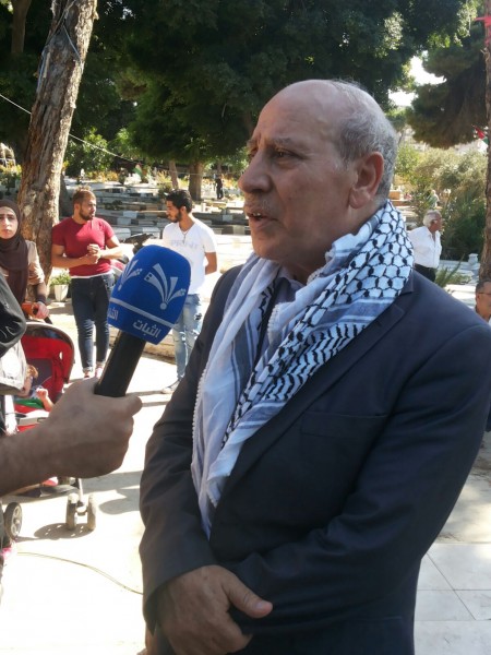 جاء ذلك في كلمة عند النصب التذكاري لشهداء فلسطين وفي تصريح خاص لعدد من وسائل الاعلام اثناء المشاركة في المسيرة الجماهيرية التي دعت لها الفصائل الفلسطينية والاحزاب اللبنانية في بيروت.