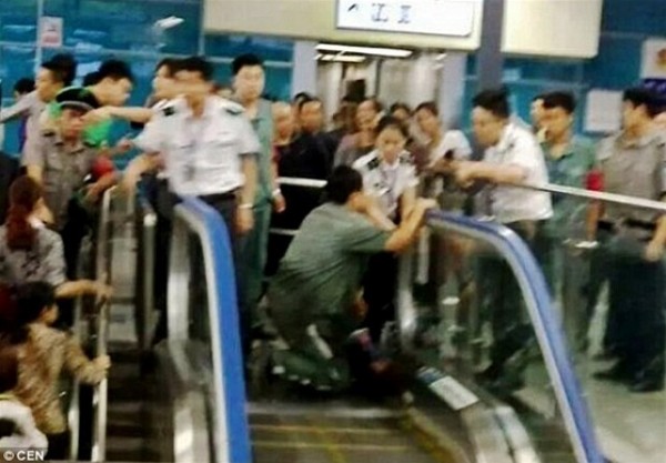 لقي صبى مصرعه عقب أن حوصر بين "درابزين" السلم الكهربائى بمحطة مترو صينية.