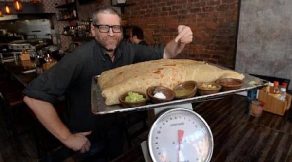 أعلن مطعم في مدينة نيويورك الأمريكية عن مسابقة لتناول كمية كبيرة من الطعام في مدة قصيرة مقابل امتلاك 10 في المائة من أسهمه. وذكر موقع "هافنغتون بوست" الإلكتروني أن مطعم "دون شينغون" الذي افتتح في أغسطس (آب) الماضي، أطلق ما سماه "تحدّي شينغون الكبير"، داعياً زبائنه إلى تناول 30 باوند (13 كيلوغرام) من شطيرة البوريتو المكسيكية، مشيراً إلى أنها ستحتوي في داخلها على اللحم، والدجاج، والأرز، والفاصولياء، والصلصة.