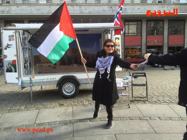 النرويج :الناشطة الفلسطينية إمتثال النجار رئيسة الجمعية الفلسطينية للمرأة في النرويج تقوم بوضع كرفان في منطقة يونجستورجا في العاصمة أوسلو لتوزيع نشرات تعريفية وعرض فيديوهات تتعلق بالأحداث الجارية حاليا في فلسطين والجرائم التي يرتكبها الإحتلال ضد أبناء شعبنا.