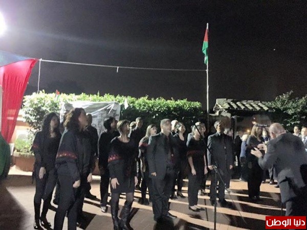 وقد ابتدا الحفل بالنشيد الوطني الفلسطيني وبالوقوف دقيقه صمت اجلالا واكبارا لشهداء فلسطين .