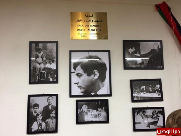 كرمت سفاره فلسطين في ايطاليا الشهيد المفكر والكاتب وائل زعيتر يوم 1972/10/12 والذي اغتاله جهاز الموساد الاسرائيلي 16/10/1972 في روماحيث كان يعمل كاول مندوب لمنظمه التحرير الفلسطينيه في ايطاليا وذلك بحضور عدد كبير ومميز من المثقفين والفنانين ورجال السياسه الايطاليين وعائله الشهيد الذين قدمو خصيصا لذلك شقيقه المهندس وضاح زعيتر من السعوديه وقريبته السيده رزان زعيتر من الاردن وصديقه السيد راسم بدران من الاردن وعدد من السلك الدبلوماسي العربي ولفيف من ابناء الجاليتين العربيه والفلسطينيه في ايطاليا.