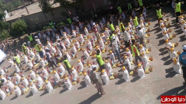 أن الحملة شملت توزيع السلات الغذائية المحتوية على ( الدقيق 25 كجم ،أرز 20 كجم-حليب 1كجم- سكر 10-الزيت 4 لتر-كرتون طماط- نص كرتون فاصوليا -10 حبات كرونة) "