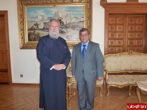 اجرى سفير دولة فلسطين د. وليد حسن لدى جمهورية قبرص سلسلة لقاءات هامة على مدار الايام القليلة الماضية لفضح الهجمة الاحتلالية الإسرائيلية الاخيرة على الشعب الفلسطيني ومقدساته . في هذا الاطار التقى السفير حسن في قصر الاسقفية القبرصية قداسة رئيس الاساقفة القبرصي خريسوستوموس الثاني ، حيث قدم شرحا" وافيا" لقداسته لما يجري في الاراضي المقدسة من انتهاكات فاضحة تقوم بها كافة أركان دولة اسرائيل ، من حكومة يمنية متطرفة ، وقوات جيش مدججه بالسلاح ، واجهزة أمن وشرطة وسوائب المستوطنين الغير شرعيين والمسلحين ; مقابل شعب أعزل ، يرفض الخضوع والاستسلام للاحتلال ، يواجه اطول احتلال استعماري احلالي ، بالمقاومة السلمية الشعبية. كما تم شرح ما تتعرض له مدينة القدس واماكنها المقدسة الاسلامية والمسيحية ، ولاسيما المسجد الاقصى ، ومحاولات تقسيمة زمانيا" ومكانيا" ، والدفع باتجاه تحويل الصراع السياسي مع الاحتلال الى صراع ديني خطير لا تحمد عقباه.