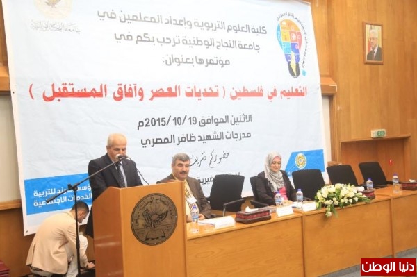 عقدت كلية العلوم التربوية واعداد المعلمين في جامعة النجاح الوطنية يوم الاثنين الموافق 19/10/2015، المؤتمر العلمي الدولي الثاني بعنوان: "التعليم في فلسطين، تحديات العصر وآفاق المستقبل"، بدعم من هيئة الاعمال الخيرية، ومؤسسة الرند، في مدرجات الشهيد ظافر المصري، بحضور د. محمد العملة، نائب رئيس الجامعة للشؤون الاكاديمية، ود. علياء العسالي، مقرر اللجنة التحضيرية للمؤتمر وعميد كلية العلوم التربوية واعداد المعلمين، وأ.د. عماد عبد الحق مقرر اللجنة العلمية للمؤتمر، والعديد من الباحثين المحليين والدوليين، وأعضاء الهيئتين الاكاديمية والادارية في الجامعة، وعدد من الطلاب.