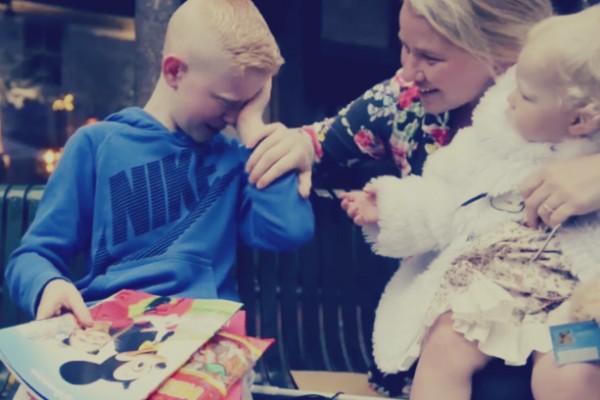 وظهر الطفل في مقطع فيديو مؤثر نشره الموقع وهو يمسح دموعه لحظة اكتشافه أن المغلف الذي قدم له يحتوي على تذاكر سفر لـ«ديزني لاند»، وسارعت والدته إلى احتضانه للتخفيف عن هذا الموقف المتضارب بين الفرح والحزن.