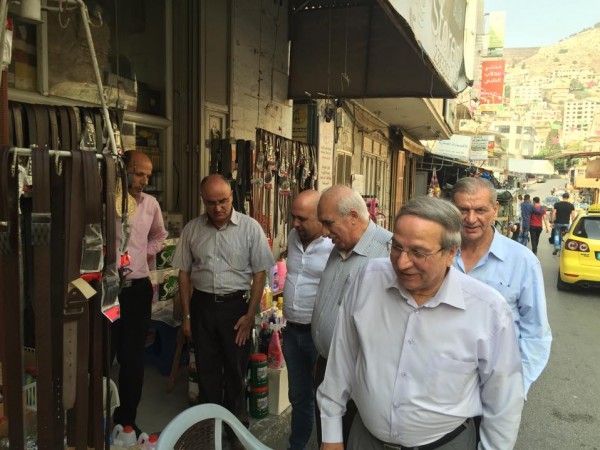 رئيس واعضاء مجلس ادارة غرفة تجارة وصناعة نابلس يقومون بجولة في شارع حطين بالمدينة