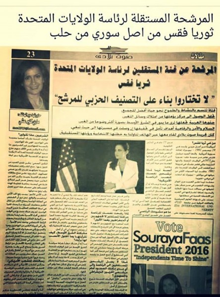 بالصور و الفيديو... " ثريا الفقس" مرشحة سورية لرئاسة أمريكا