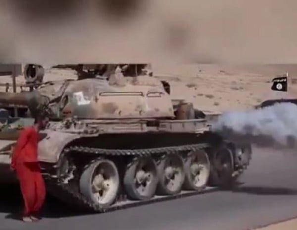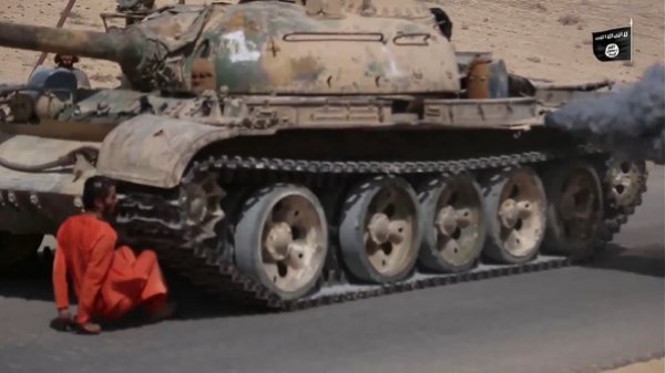 بالصور..."داعش" ينفذ أول عملية إعدام .. الدهس بالدبابة !!