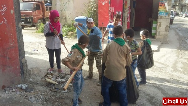وأشبال وزهرات كشفية وأعضاء لجنة الصحة البيئية وقسم الصحية في الأونروا.