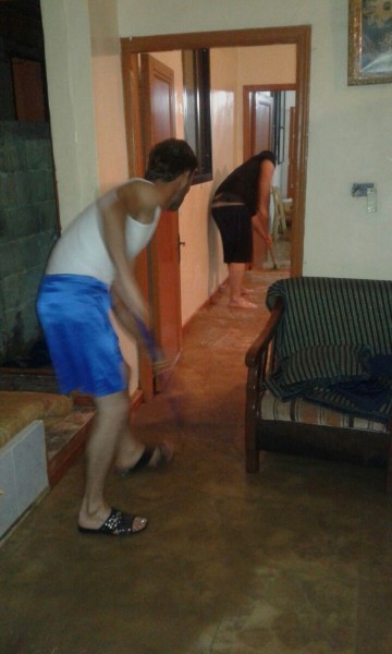 ودخلت المياه الى عشرات المنازل دون استئذان ، وبدون موعد وفي جنح الظلام حيث الناس كانو نيام ، وقد اضطر عدد من اصحاب المنازل من تكسير جدران لاخراج المياه من منازلهم ، وكانت الاضرار كبيرة في العفش والاثاث . وقد تعاون الاهل والجيران ومجموعة كبيرة من الشباب من سحب وانقاذ عشرات الاطفال والنسوة والشيوخ ، ونقلهم الى منازل امنة