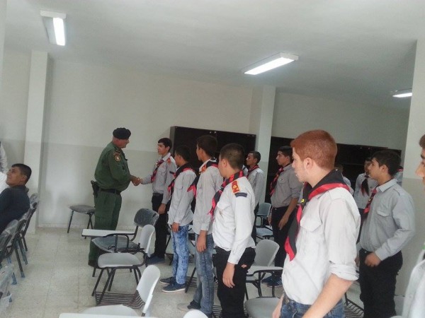استقبل قائد معسكر حرش السعادة الرائد رشاد جبارة ومجموعة من الضباط وصف الضباط من قوات الأمن الوطني الفلسطيني المدربين والمشرفين على دورة للعرفاء الأوائل للفرق الكشفية لمدارس محافظة جنين، ونحو أربعون طالباً من الصف
