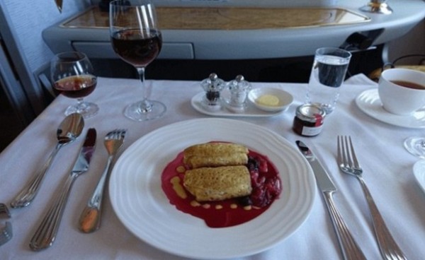ووثق لقراء مدونته بالصور كيف استفاد من خدمات طيران الامارات الفخمة من بيها الصعود للطائرة من خلال مدخل خاص، إضافة إلى الأجنحة الفاخرة ومرافق الـ “شاور سبا” و ”الصالون الجوي” والاستمتاع بالوجبات العالمية التى يحضرها طهاة مشهورين.
