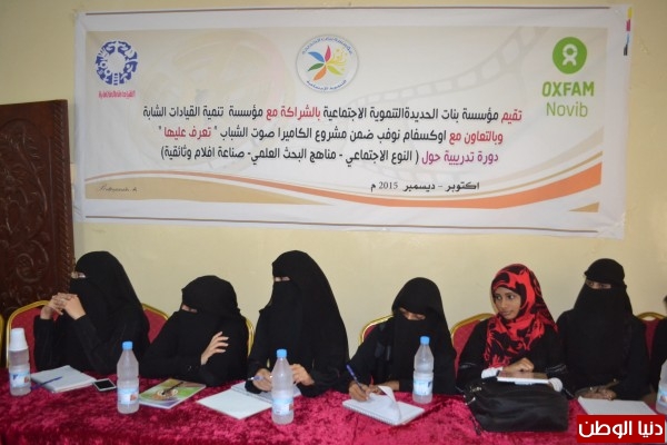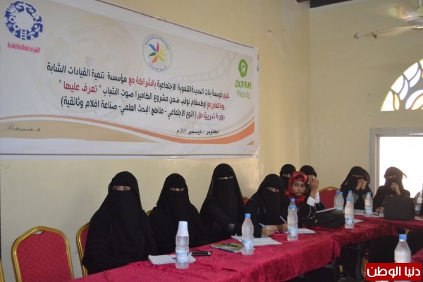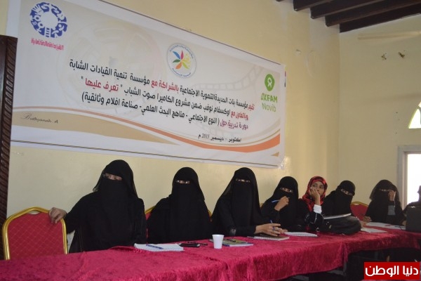 تواصلت أمس بمحافظة الحديدة فعاليات البرنامج التدريبي " صناعة الأفلام الوثائقية - النوع الاجتماعي - مناهج البحث العلمي " والتي تقيمها مؤسسة بنات الحديدة التنموية الاجتماعية بالشراكة مع مؤسسة تنمية القيادات الشابة بالتعاون مع أوكسفام/ ضمن مشروع الكاميرا صوت الشباب " تعرف عليها " .
