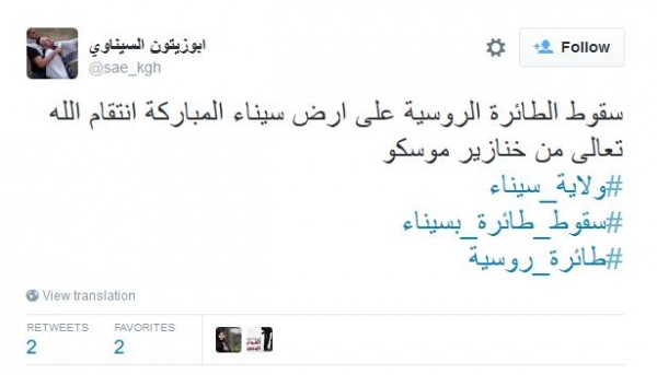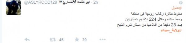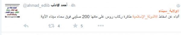 صور - مؤيدون لـ"ولاية سيناء" يلمحون لاستهداف الطائرة الروسية المنكوبة ومصر تنفي!