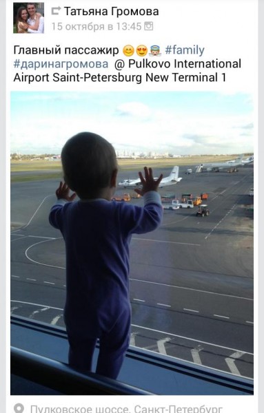ونشرت والدة الطفل تاتيانا هذه الصورة على موقع إنستغرام، وذلك قبيل إقلاع الطائرة من مطار بولكوفو الدولي متوجهة إلى سيناء، بحسب ما يوضح وصف الصورة.