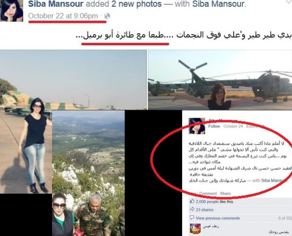 كما قامت بحذف منشور كانت قد أعلنت فيه رغبتها الشديدة بركوب "طائرة البراميل" المتفجرة التي تقصف الأحياء السكنية في سوريا.