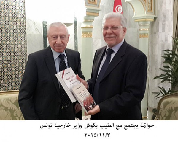 عقد نايف حواتمة الأمين العام للجبهة الديمقراطية لتحرير فلسطين اجتماعاً مطولاً مع الطيب بكوش وزير خارجية تونس.