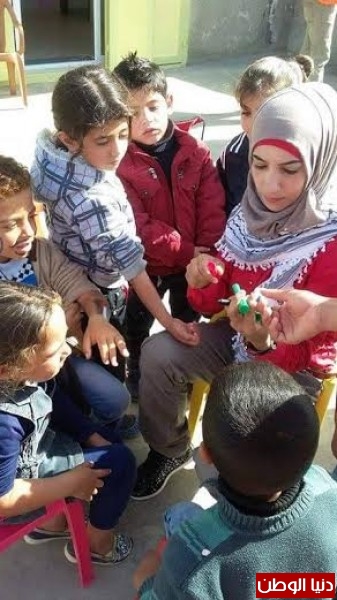 هذا وقد نفذ المركز اليوم نشاط ترفيهي لأطفال روضة "خلة المية" شرق مدينة يطا وبالشراكة مع متطوعي الدفاع المدني في مدينة يطا، تم خلاله تنفيذ نشاط فرح ومرح للأطفال في المنطقة من خلال العديد من الالعاب الترفيهية والرسم على الوجوه، ومن خلال رسم عدد من الجداريات في ساحات و جدران الروضة.