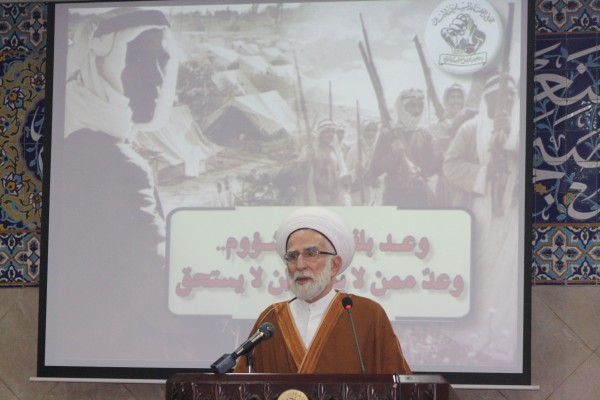 نجتمع اليوم في ذكرى مشؤومة في تاريخ أمتنا الإسلامية والعربية كانت سبباً لمآسينا منذ حصولها وهي ذكرى الوعد المشؤوم الذي أعطته حكومة بريطانيا إلى اللورد روتشيلد في الثاني من تشرين الثاني من العام 1917 والذي اصطلح على تسميته بوعد بلفور نسبة إلى وزير الخارجية البريطانية في ذلك الوقت أرثر جيمس بلفور.