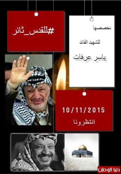 تواصل لجان الشبيبة الثانوية في اقليمنابلس وباشراف حركة فتح في الاقليم استعداداتها في الذكرى السنوية الحادية عشرلاستشهاد القائد الرمز ياسر عرفات " ابو عمار"، حيث ستنظم بهذه المناسبةمعرضا بعنوان " للقدس ثائر" يستعرض تاريخ القائد ومسيرته الوطنية،ومحطات نضال شعبنا التي قادها بكل امانة واخلاص، قبل أن يسلم الامانة شهيدا، ويخلدفي ذاكرة الاجيال تلو الاجيال.
