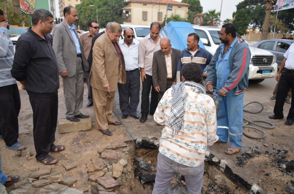 محافظ الاسماعيلية يتابع اصلاح كسر خط المياه العكرة الخاص برى المسطحات الخضراء بأول طريق البلاجات