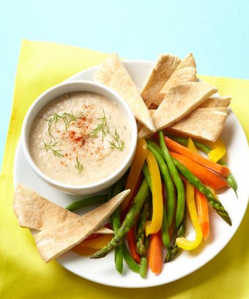 الحمص يعزز الطاقة لإحتوائة على الحديد، وشرائح الفليفلة الحلوة الحمراء تحتوي على نسبة عالية من فيتامين C، وستساعدك على إمتصاص الحديد من الحمص، كما يقول خبير التغذية الشاملة بيغي Kotsopoulos، مؤلف كتاب يجب أن يكون ذا أكلت يكون.