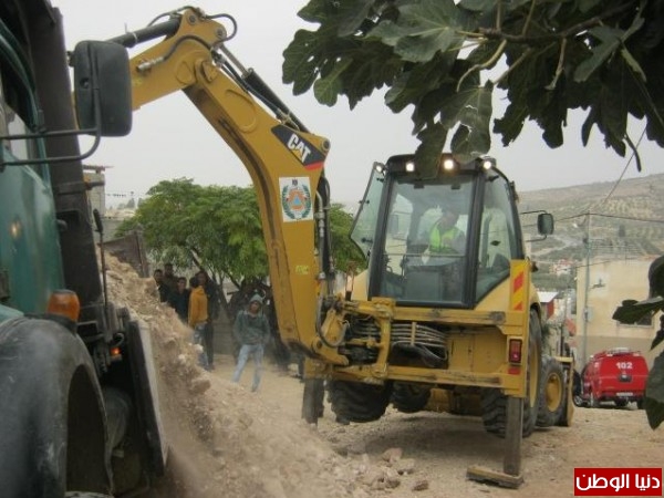 بالصور..انزلاق شاحنة في حفرة قيد الانشاء جنوب جنين