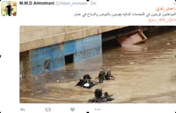 وعلى غرار هاشتاج #اسكندرية بتغرق، الذي دشّنه مصريون أمس الأربعاء، دشّن الأردنيون هاشتاج جديد تصدّر الترند العالمي لتويتر .